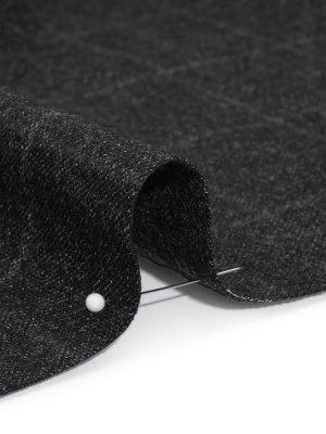 Brushed Wool Twill – Black and Gray Windowpane Check – Deadstock