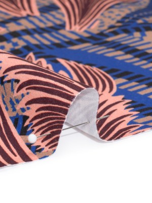 Stretch Cotton Sateen – Cobalt Blue and Burgundy Feathers