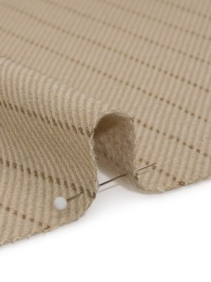 Brushed Wool Blend Twill – Beige and Brown Chalk Stripes – Deadstock