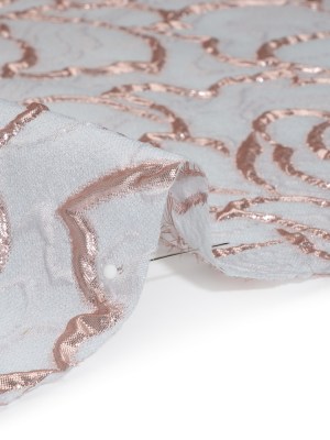 Rose Outlines Cutwork Luxury Brocade – Metallic Rose Gold and Pale Pink