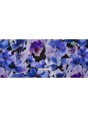 Silk Charmeuse Print 16MM, Made in Italy – Ultramarine Blue and Lilac Soft Watercolor Florals