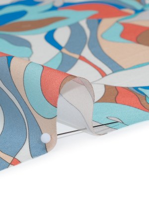 Silk Charmeuse Print 16MM, Made in Italy – Aqua Blue, Tan and Coral Pink Retro Lily Florals