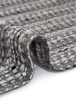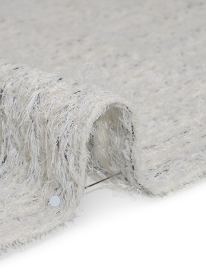 Metallic Wool Blend Tweed with Eyelash Fringe Made in Italy – White, Charcoal and Silver Stripes