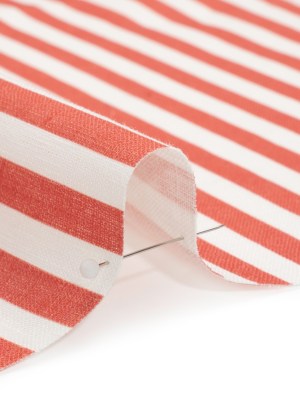 Medium Weight Linen Woven – Coral Stripes – Lydia Collection