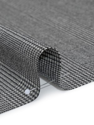 Brushed Virgin Merino Wool Twill – Black and White Glen Plaid