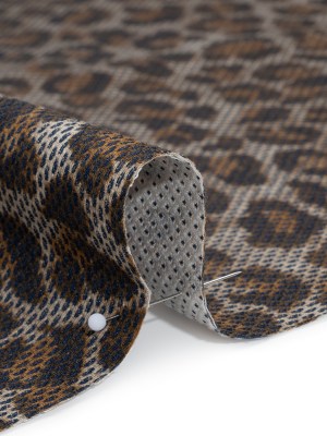 Cotton Birdseye Pique Print Made in Italy – Brown, Tan and Navy Cheetah Spots – Deadstock