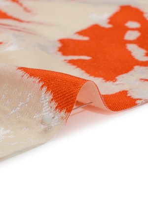 Red, White and Beige Soft Leaves Lightweight Polyester and Viscose Luxury Brocade