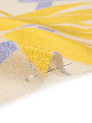 Neon Yellow, White and Beige Soft Leaves Lightweight Polyester and Viscose Luxury Brocade
