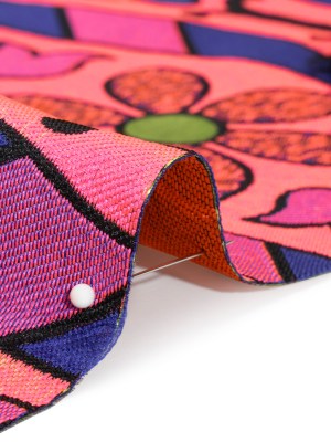 Hot Pink, Blue and Black Flowers and Fringed Diamonds Metallic Brocade