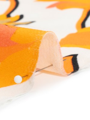 Stretch Cotton Sateen – Orange and Blue Geometric Feathers – Mood Exclusive Flock Together Print