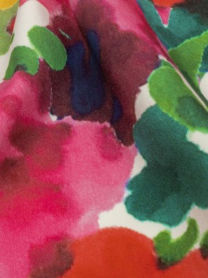 Stretch Cotton and Viscose Sateen Print – Red, Yellow and Green Painterly Floral – Mood Exclusive Spring Afternoon