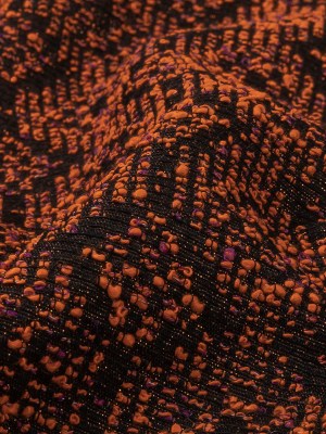 Metallic Gold, Shocking Orange and Black Diamonds Polyester Boucled Jacquard