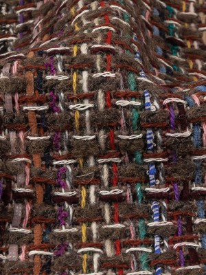 Black Coffee, Cream and Multicolor Tweedy Plaid Blended Wool Woven