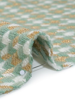 Metallic Wool and Acrylic Tweed Twill – Mint Green, Gold and White Geometric – Deadstock