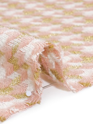 Metallic Wool and Acrylic Tweed Twill – Pink, Gold and White Geometric – Deadstock