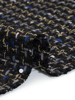 Metallic Acrylic and Wool Tweed – Black, Turquoise Blue and Gold – Deadstock