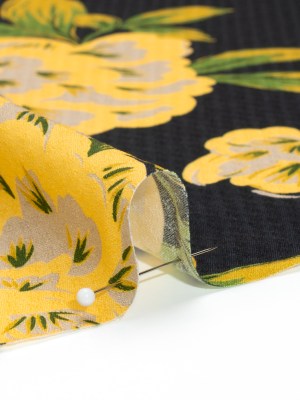 Polyester Burnout Brocade Print – White, Green and Black Floral – Designer Deadstock