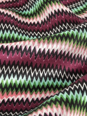 Pink and Green Zig Zag Stripes Silk Charmeuse
