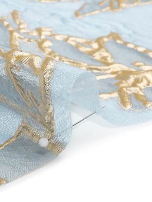 Metallic Gold and Sky Blue Floating Flowers Luxury Burnout Brocade