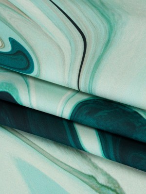 Polyester Satin – Sea Green and Beige Liquid Swirls – Mood Exclusive Liquid Motion Print