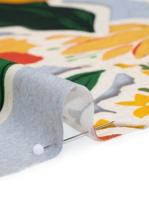 Polyester Satin – Pale Blue, Green and Orange Flowers Collage – Mood Exclusive Clipped Botanicals Print