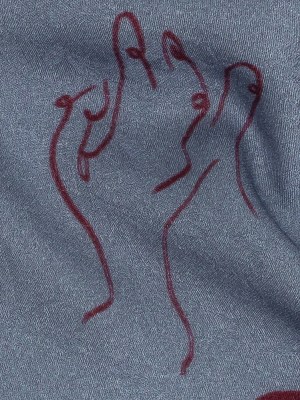 Leafy Viscose Jacquard Print – Blue and Wine Red Doodled Objects – Mood Exclusive Hand It Over