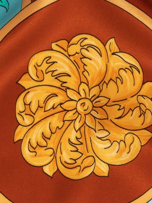 Mood Exclusive Italian Rust, Sun Orange and Bachelor Button Ornate Digitally Printed Silk Charmeuse