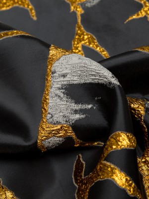 Metallic Gold, London Fog and Black Satin-Faced Abstract Luxury Brocade