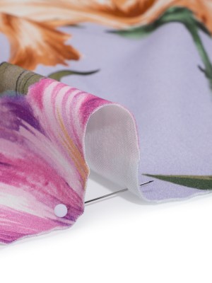 Polyester Satin – Lavender, Lime Green and Orange Little Floral Stickers – Mood Exclusive Sticker Garden Print