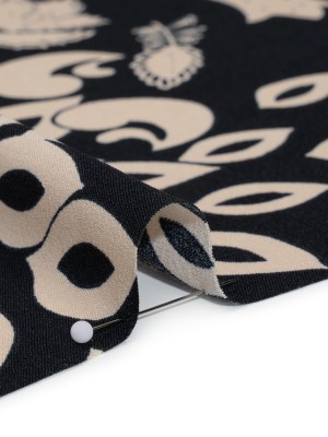 Polyester Crepe Print – Black and Beige Paisley – Designer Deadstock