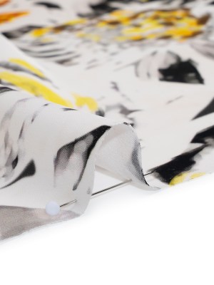 Polyester Satin – Black, White and Yellow Floral Negatives – Mood Exclusive Floral Exposure Print