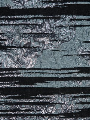 Black and Metallic Stone Blue Luxury Striated Burnout Brocade