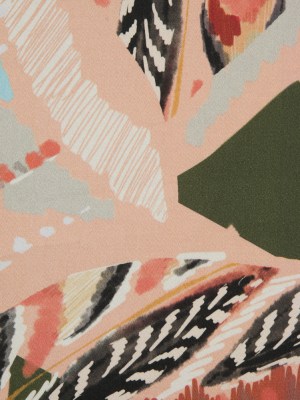 Stretch Cotton Sateen – Peach and Plum Feathers or Leaves – Bright Dead Things Print – Mood Exclusive Avenable Collection