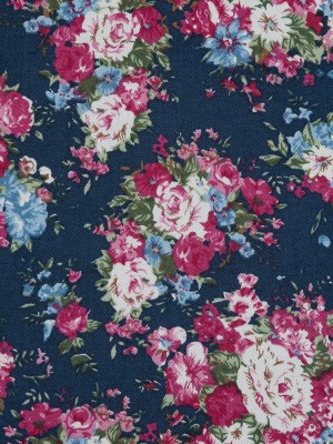 Wild Rose Pink and Insignia Blue Floral Cotton Twill