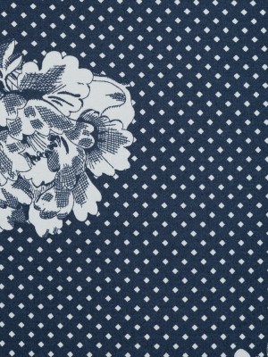 Insignia Blue and Blanc de Blanc Floral High Density Stretch Cotton Sateen