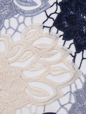 Guipure Lace – Navy, Gray and Ivory Tri-Color Floral