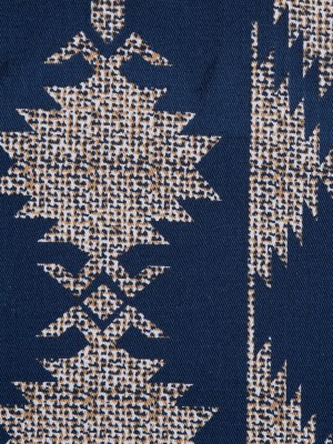 Blue and Beige Geometric Stretch Cotton Twill