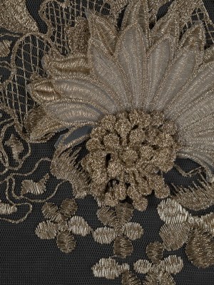 Metallic Gold 3D Floral Embroidered Mesh