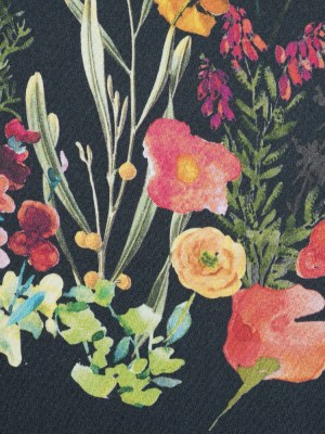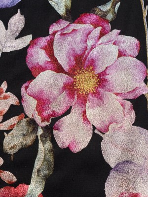 Black Ponte Knit with Multicolor Floral Foil Design