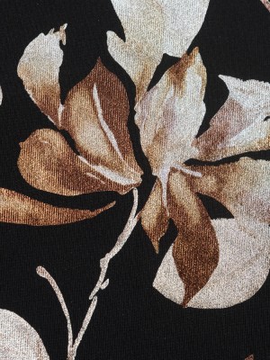 Black Ponte Knit with Brown Floral Foil Design