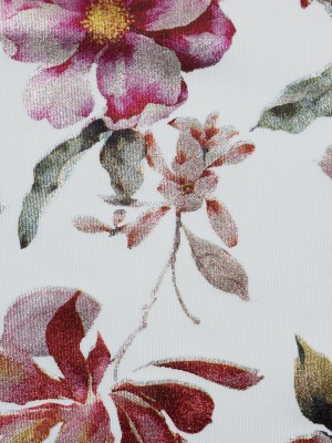 White Ponte Knit with Red Floral Foil Design