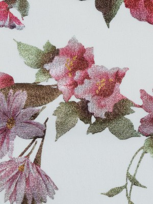 White Ponte Knit with Multicolor Floral Foil Design
