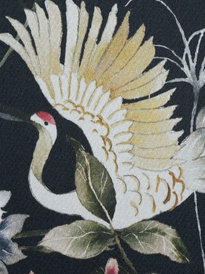 Stretch Cotton Sateen – Black and Green Birds and Flowers – La Grande Tournee Print – Mood Exclusive Jacques Collection