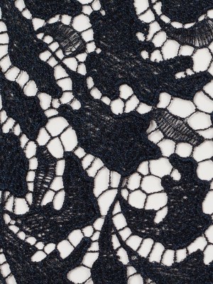 Re-Embroidered Lace with Scalloped Edge – Navy Floral