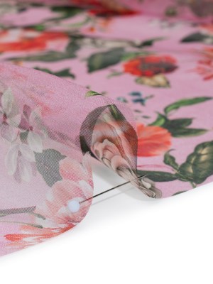 Silk Gazar Print Made in Italy – Pink, Green and White Enchanted Florals – Deadstock