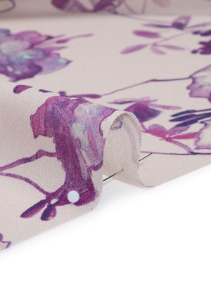 Lightweight Silk Crepe Made in Italy – Pale Purple, Lavender and Plum Painted Flowers – Deadstock