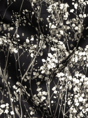 Stretch Cotton Sateen Panel – White and Black Flowering Branches – Ghost Light Growth Print – Mood Exclusive Twilight Collection