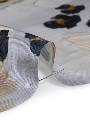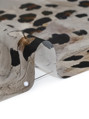 Silk Satin Print Made in Italy – Brown, Beige and Gray Painted Animal Spots – Deadstock