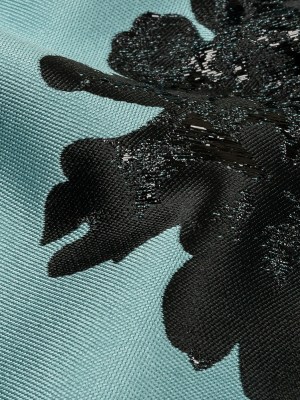Metallic Aqua, Sky Blue and Off White Fantastic Flowers Luxury Burnout Brocade