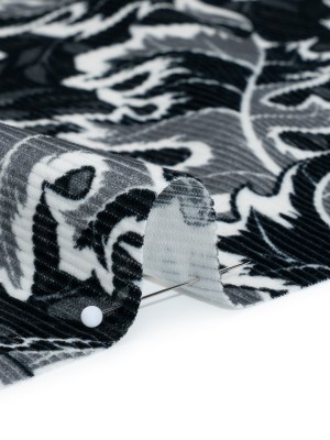 Soft Cotton Corduroy Print – Black, White and Gray Oak Leaves – Deadstock